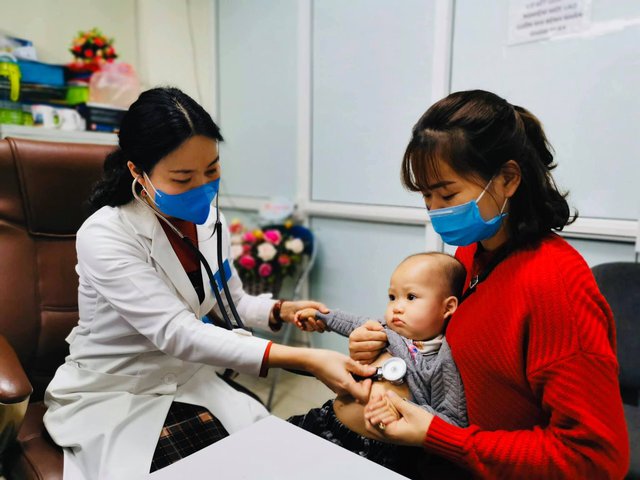 TS.BS Phan Bích Nga – Viện Dinh dưỡng Quốc gia khám cho trẻ.