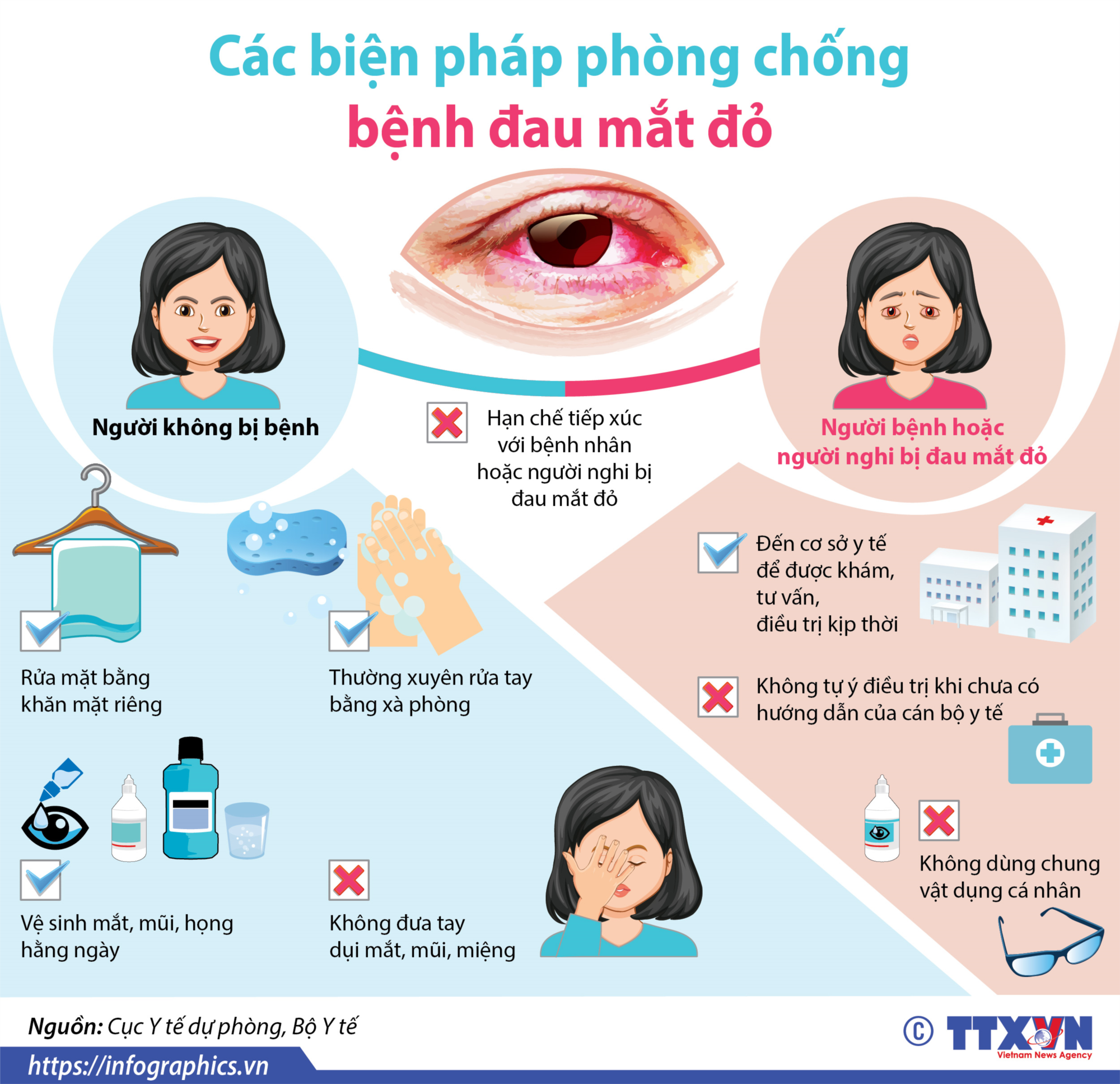 Nếu bệnh đau mắt đỏ đang vào mùa dịch hoặc người thân, bạn bè, đồng nghiệp của bạn có biểu hiện đau mắt đỏ, bạn cần thực hiện 3 việc sau để bảo vệ bản thân khỏi nguy cơ nhiễm bệnh [2]: