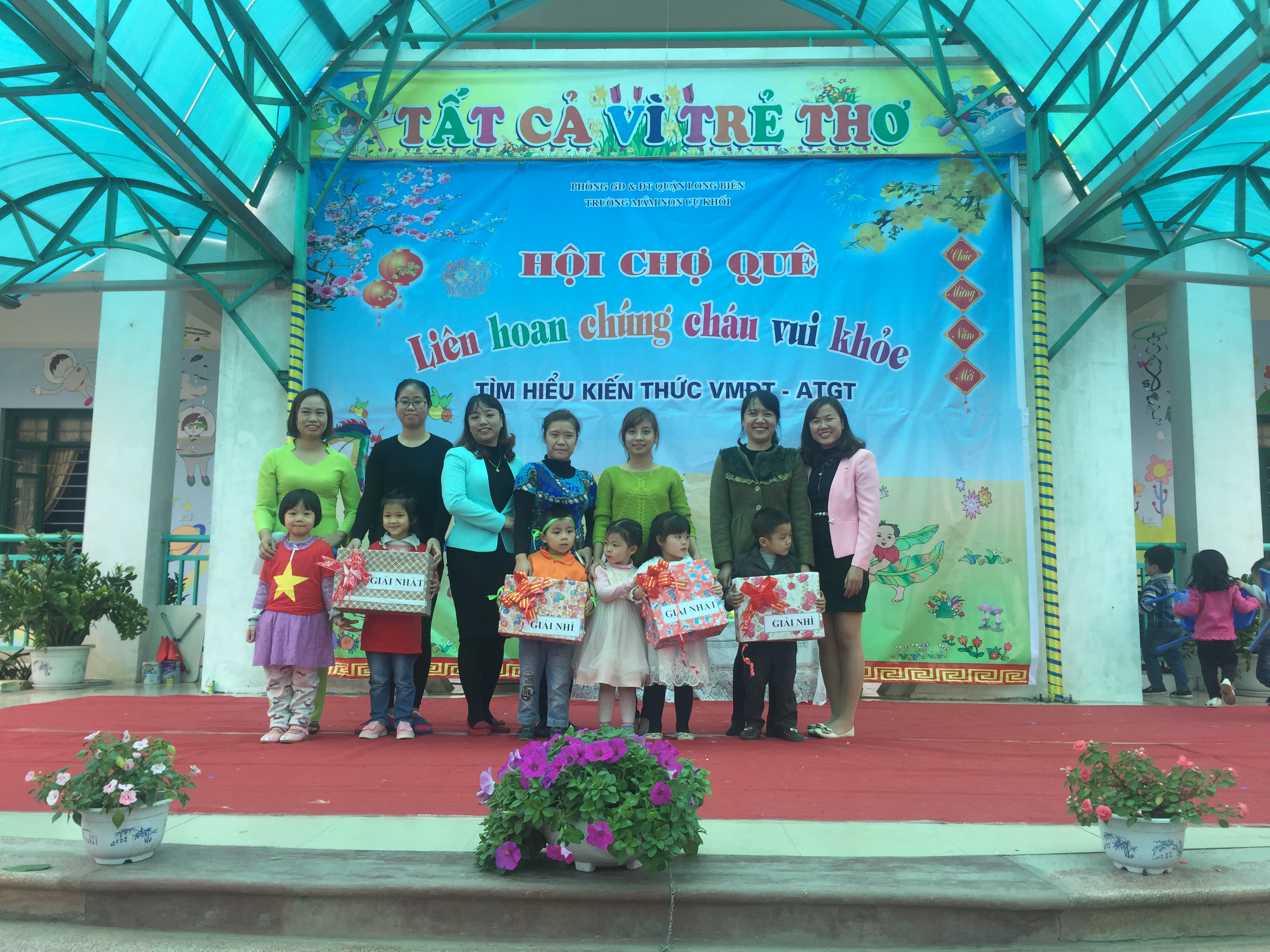 Thực hiện nhiệm vụ năm học 2016 - 2017 và triển khai kế hoạch tháng 01/2017 của PGD&ĐT quận Long Biên. Sáng ngày 18/1/2017 trường mầm non Cự khối đã tổ chức Hội chợ quê - Liên hoan “ Chúng cháu vui khỏe- tìm hiểu kiến thức văn minh đô thị và an toàn giao thông”