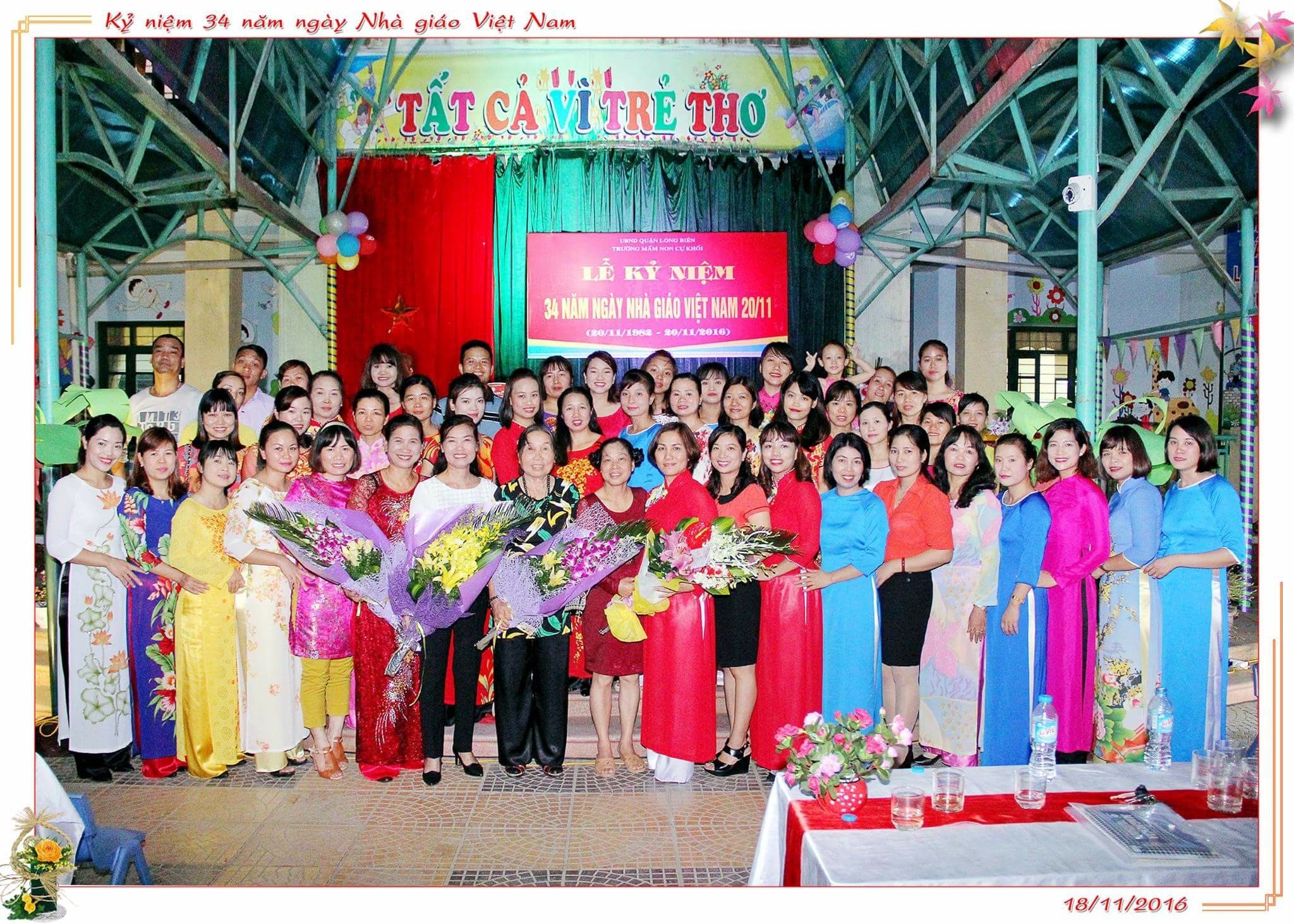 Thực hiện hướng dẫn của Phòng GD&ĐT quận Long Biên về tổ chức kỷ niệm ngày nhà giáo Việt Nam 20/11. Thứ 5 ngày 18 tháng 11 năm 2016. Trường mầm non Cự Khối long trọng tổ chức Lễ kỷ niệm 34 năm ngày nhà giáo Việt Nam 20/11 ( 20/11/1982 - 20/11/2016).