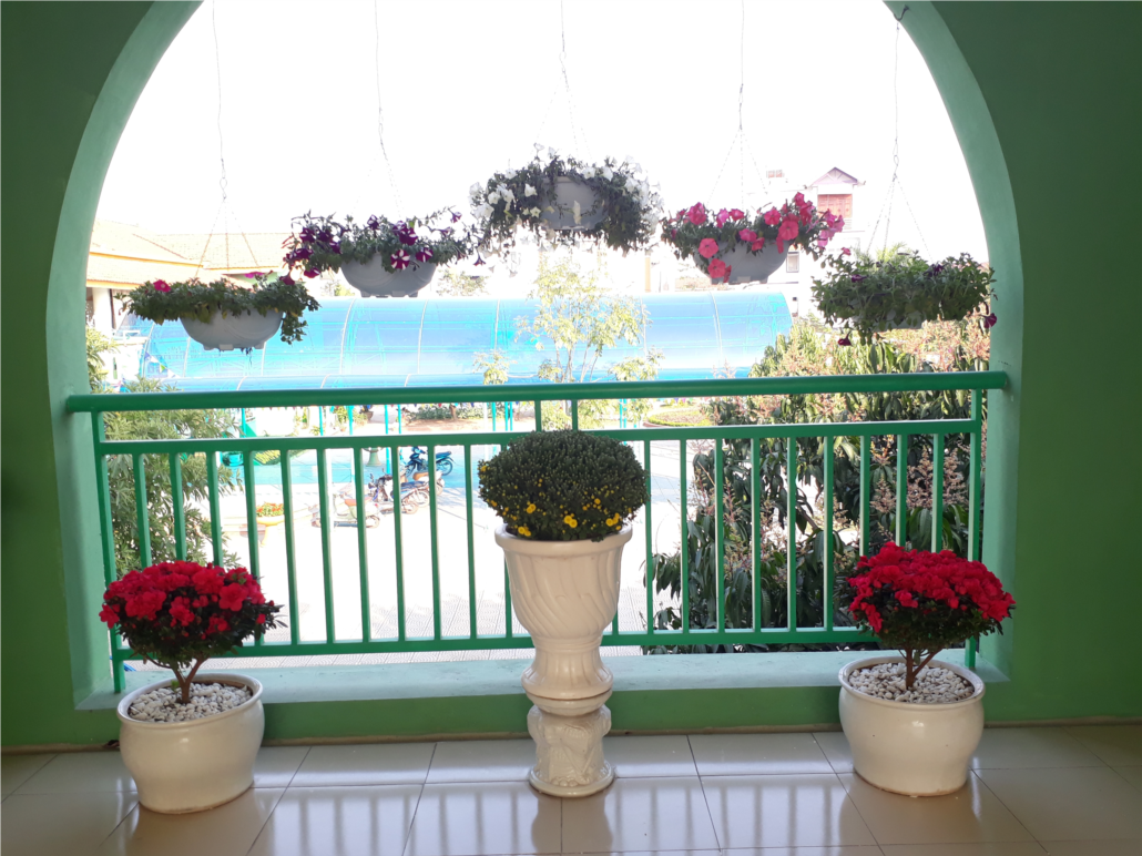 Không thể thiếu không gian của những sắc hoa rực rỡ, vì vậy nhà trường tạo riêng một khoảng đất cố định, phù hợp với diện tích đất của nhà trường để trông các loại hoa theo từng mùa. Đặc biệt là mỗi độ xuân về thì cả trường laị rực rỡ trong sắc hoa xuân khoe thắm toàn trường.