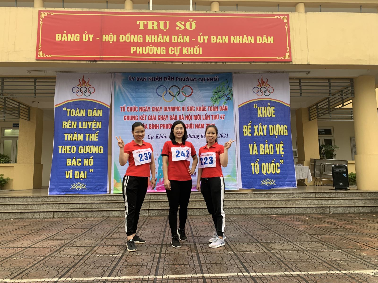 Giải chạy có sự góp mặt của đông đảo các vận động viên đến từ các tổ dân phố, các cơ quan đoàn thể, trường học trên địa bàn phường, trong đó trường MN Cự Khối có 03 vận động viên tham gia thi ở nội dung thi chạy dành cho nữ. Tham gia giải chạy với tinh thần tự tin và thoải mái, các nữ vận động viên của nhà trường đã cố gắng hết sức mình và đạt được thành tích tốt.