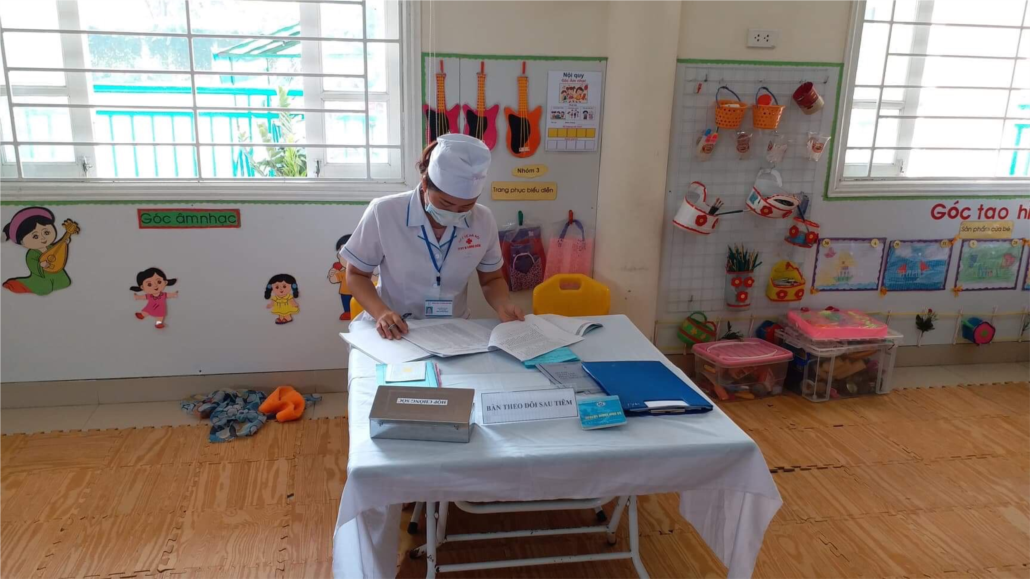 Sáng nay(26/11/2018) trường mầm non Cự Khối phối hợp với trạm y tế phường Cự Khối đã tiêm bổ xung vắc xin sởi - Rubella cho các con tại trường.Nhà trường đã tuyên truyền với phụ huynh với nhiều hình thức( băng zôn, khẩu hiệu, đọc bài phát thanh vào giờ đón và trả trẻ để phụ huynh nắm được sự cần thiết của chiến dịch)