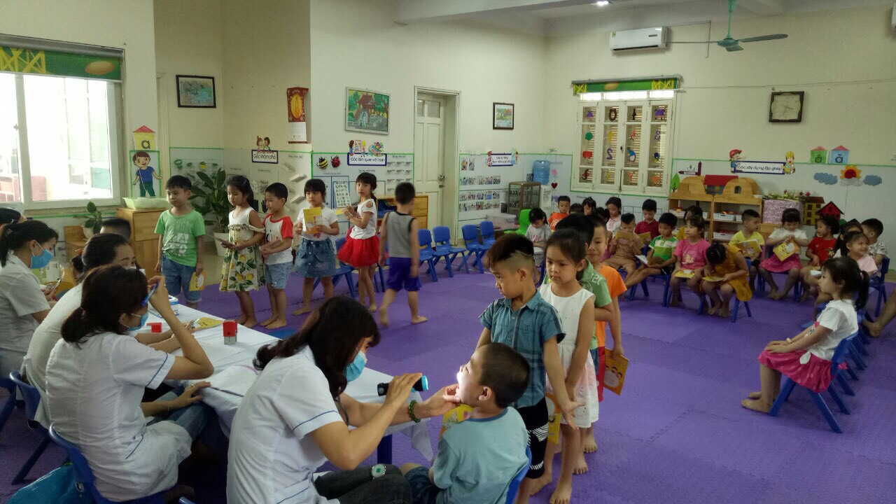 Kết quả kiểm tra sức khoẻ của trẻ đã được cán bộ y tế phường và nhân viên y tế nhà trường cùng giáo viên phụ trách lớp ghi chép cụ thể trong sổ theo dõi sức khỏe, chấm biểu đồ phân loại sức khỏe trẻ và được giáo viên các lớp thông báo đến phụ huynh học sinh, đặc biệt là một số trẻ mắc bệnh. Qua đó phụ huynh nắm bắt được tình hình sức khỏe của trẻ và có biện pháp điều trị kịp thời cho trẻ.