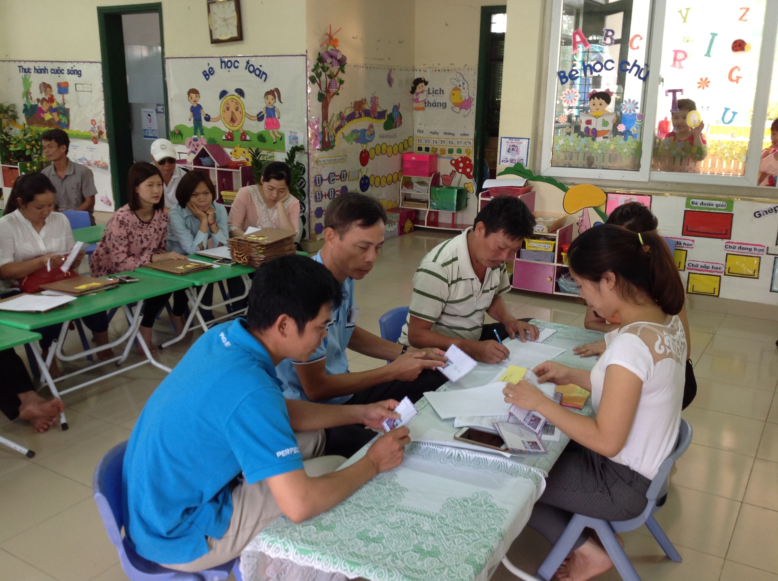 Để phục vụ tuyển sinh trực tuyến năm học 2017-2018 của Sở GD&ĐT Hà Nội. Trong cuộc họp phụ huynnh cuối năm ngày 26 tháng 5 năm 2017, Giáo viên dạy các lớp 5 tuổi đã thực hiên đúng quy trình trả mã học sinh cho phụ huynh. Các cô thực hiên trả mã cho đúng bố(mẹ) của học sinh đó. Khi phụ huynh nhận mã của con mình thì phụ huynh sẽ kí xác nhận vào danh sách học sinh đã nhận mã học sinh. Sau khi hoàn thành việc trả mã cho phụ huynh học sinh, giáo viên tiếp tục tuyên truyền và hướng dẫn phụ huynh cách thức tuyển sinh trực tuyến theo hương dẫn của phòng GD&ĐT quận gửi về các trường về “THÔNG TIN HỖ TRỢ CMHS CÔNG TÁC TUYỂN SINH TRỰC TUYẾN NĂM HỌC 2017-2018”. Tất cả những phụ huynh tham dự họp đã nhận đủ, đúng mã của con mình. Còn một số phụ huynh vắng mặt trong buổi họp sẽ đươc nhà trường tiếp tục trả đến hết ngày 29/5/2017 theo thông báo của phòng giáo dục.