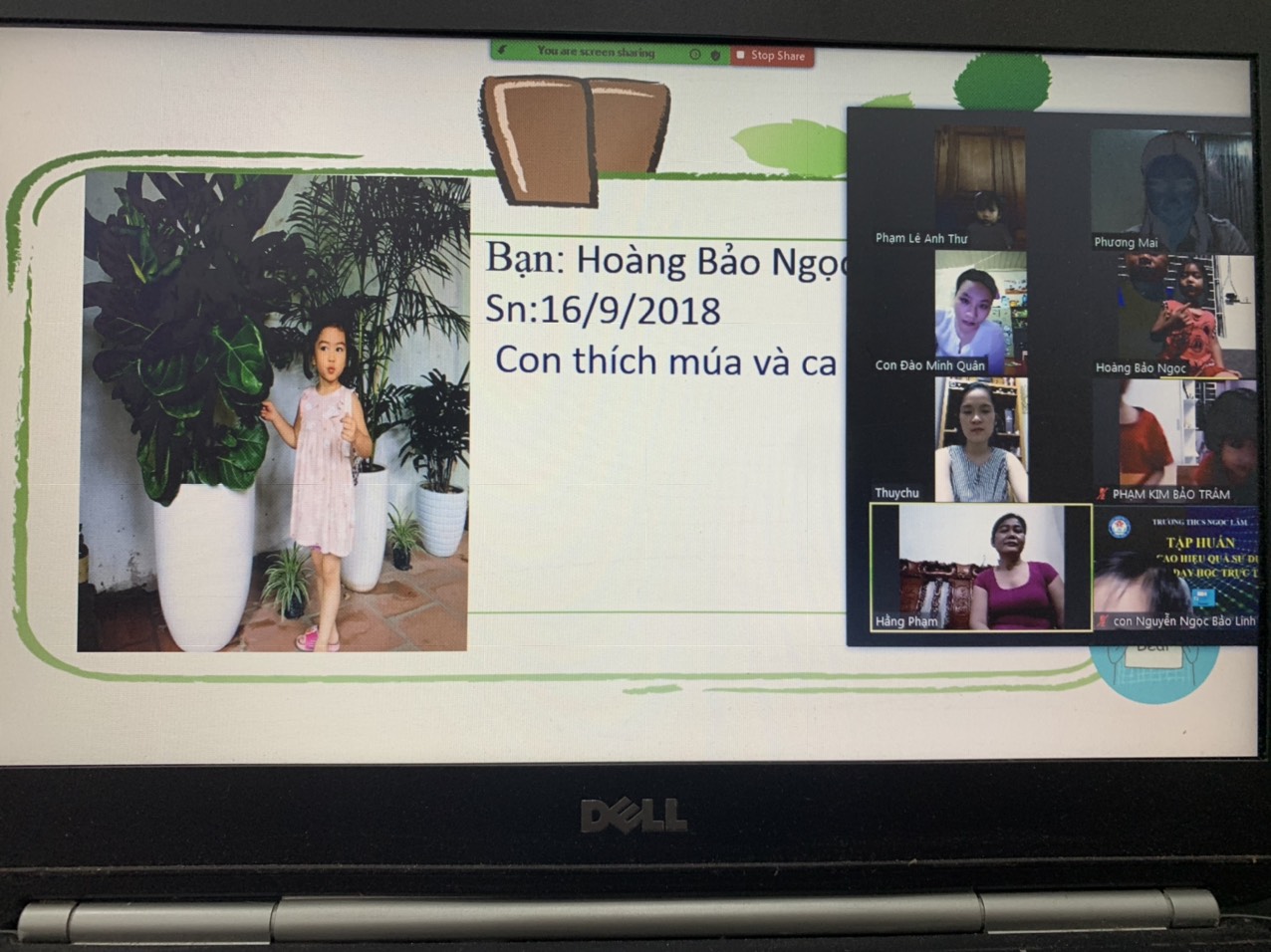 Được các cô và bố mẹ động viên khuyến khích, các con mạnh dạn, tự tin giới thiệu về bản thân : tên, nick name ở nhà, sở thích……qua đó các con nhớ được tên một số bạn trong lớp.