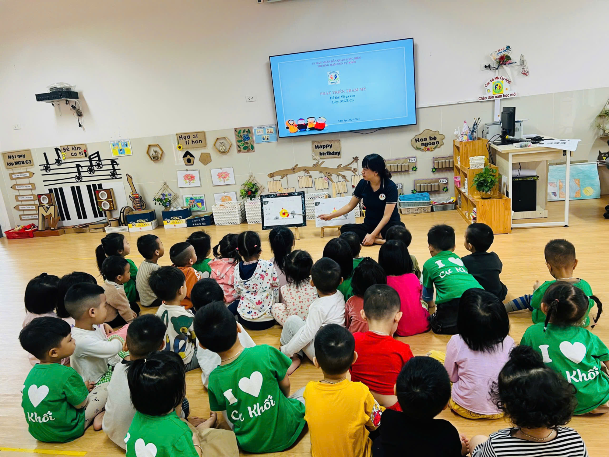 Hoạt động tạo hình là phương tiện giáo dục toàn diện rất tích cực không thể thiếu được trong chương trình giáo dục trẻ. Để phát triển khả năng tạo hình của trẻ, khơi dậy những cảm xúc tự nhiên của trẻ, phát huy tính tích cực, sáng tạo trong tâm hồn trẻ thơ trong hoạt động tạo hình thì người giáo viên cần phải tổ chức tốt môi trường giáo dục cho hoạt động tạo hình. Sau đây là một số hình ảnh giờ hoạt động tạo hình: " Vẽ con gà" của lớp: