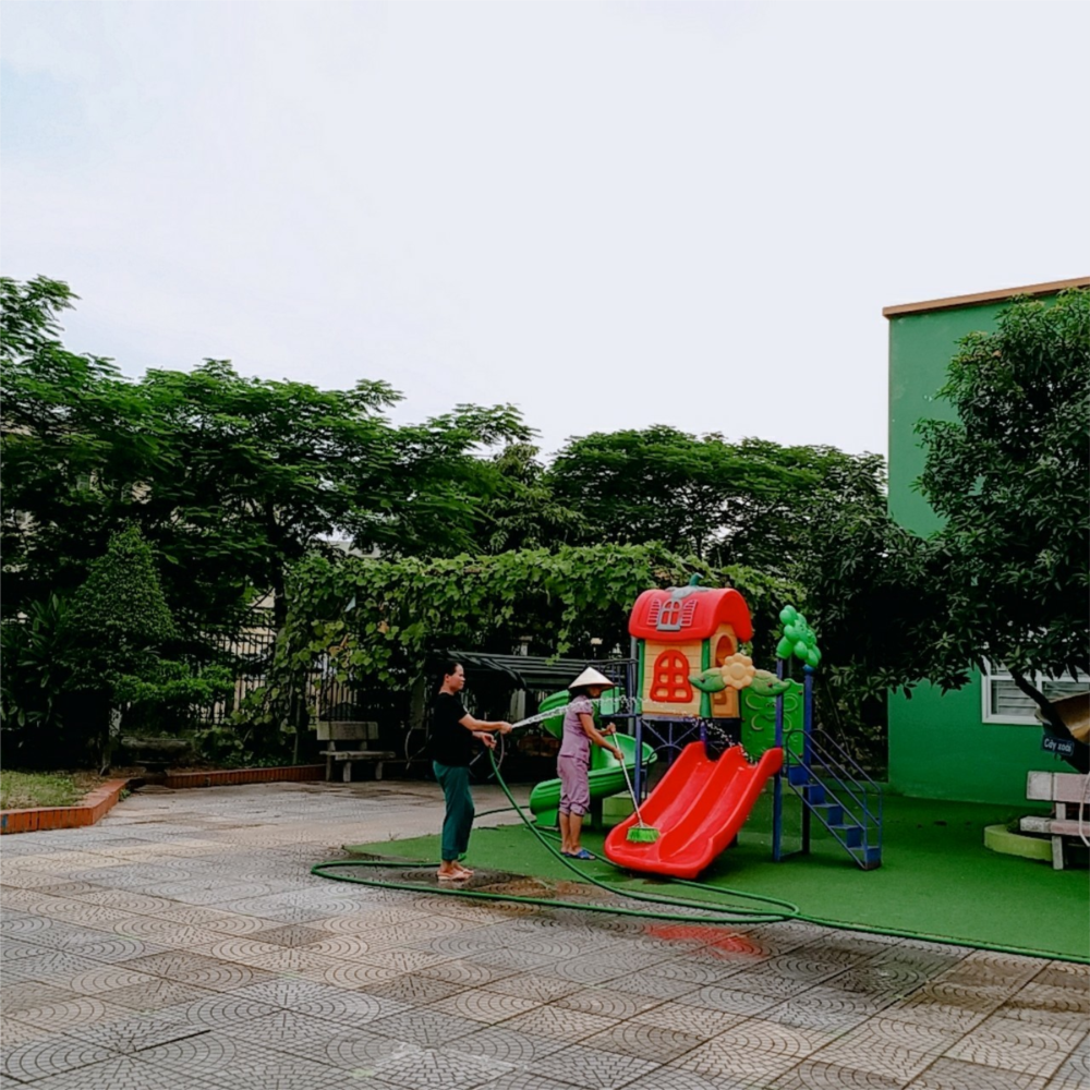 Với tinh thần hăng hái, tích cực nhằm giữ gìn môi trường sư phạm sạch đẹp, an toàn và không dịch bệnh, CBGVNV nhà trường đã hoàn thành các nội dung công việc như: Nhổ cỏ,quét dọn nước đọng, rêu mốc, thu gom lá rụng tại các bồn cây, sân cỏ, cọ rửa vệ sinh các thùng đựng rác, làm cỏ vườn trường, nạo vét khơi thông cống rãnh và rắc vôi bột, quy hoạch sắp xếp kho để bình nước uống...