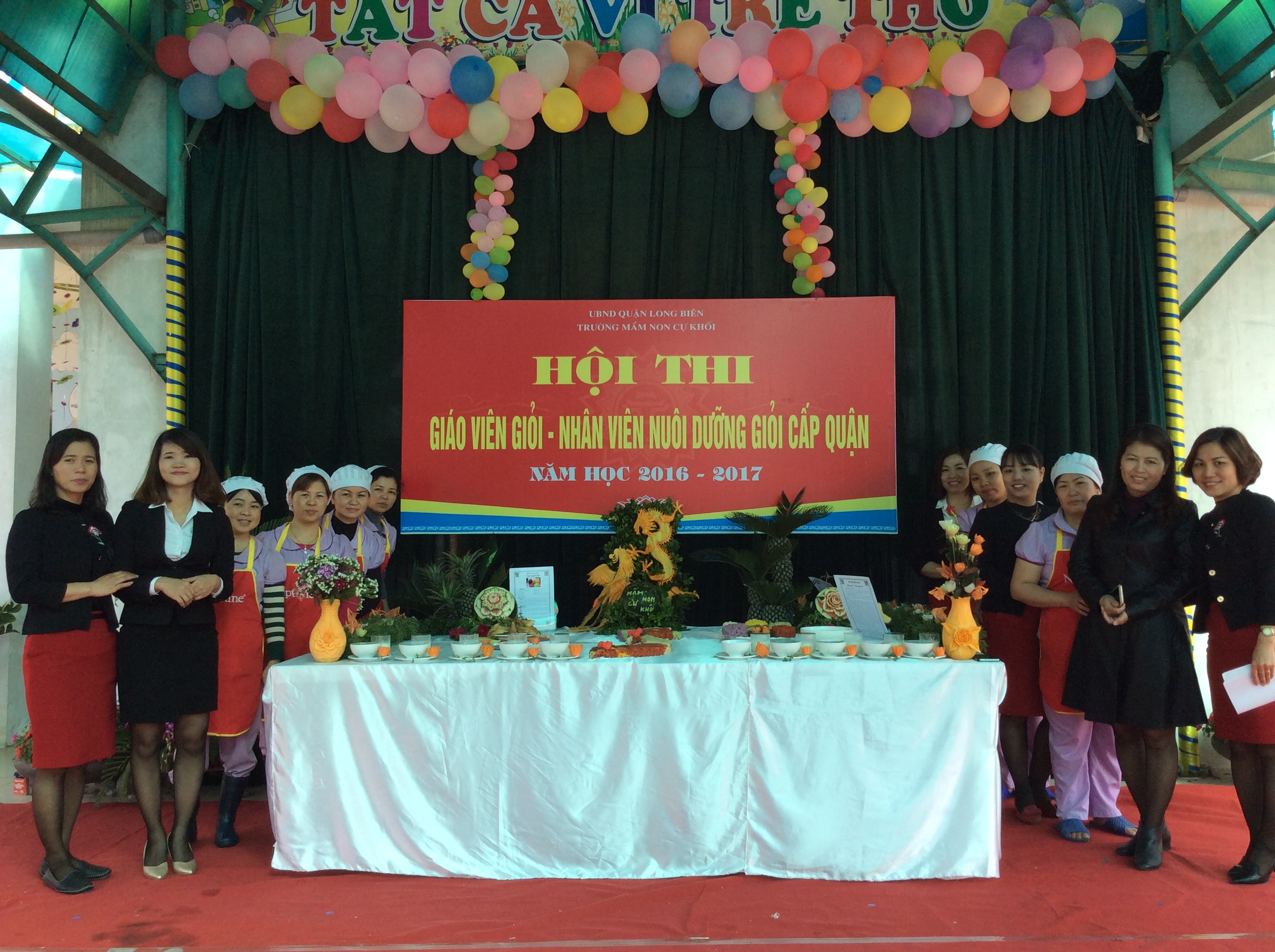 Hàng năm, Phòng GD&ĐT quận Long Biên đều tổ chức Hội thi giáo viên giỏi, nhân viên nuôi dưỡng giỏi cấp quận nhằm nâng cao chuyên môn cho cán bộ, giáo viên, nhân viên trong toàn quận. Tham gia vào phong trào này, trường mầm non Cự Khối cũng lựa chọn được 3 đồng chí giáo viên và 1 đồng chí nhân viên nuôi dưỡng đã đạt giải cao trong Hội thi GVG-NVNDG cấp trường để tham gia thi cấp quận. Qua vòng thi lý thuyết, 4 đ/c đủ điều kiện đã bước vào vòng thi thực hành.