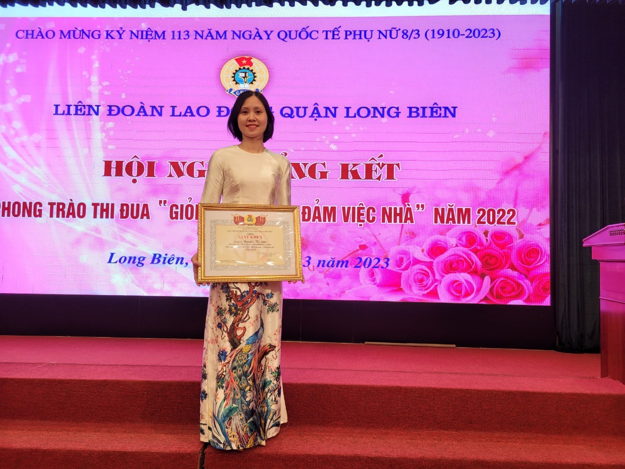 Cô Lan chia sẻ, bản thân là giáo viên mầm non vốn rất bận rộn và khó khăn về thời gian. Hết việc ở trường, cô lại tất bật trở về nhà, ở đó có bố mẹ chồng và ba con, nấu cho bố mẹ và các con những bữa ăn ngon.... Với tình yêu thương vô bờ bến, sự chăm lo chu đáo của cô Lan trong nhiều năm qua, bố mẹ chồng cô luôn yêu thương con dâu như con đẻ của mình. Công tác hơn 10 năm trong ngành giáo dục, bản thân cô luôn cố gắng học tập, nâng cao trình độ bản thân để đáp ứng nhu cầu của ngành học. Trong những năm gần đây, Đảng và Nhà nước luôn quan tâm đến giáo dục, đặc biệt là giáo dục mầm non nên là một giáo viên, cô Lan luôn tìm tòi, sáng tạo trong các tiết dạy để trẻ vừa được học, vừa được chơi. Những năm gần đây, việc thực hiện nhiệm vụ “Giáo dục lấy trẻ làm trung tâm” đòi hỏi người giáo viên phải biết tạo cơ hội cho trẻ học bằng nhiều cách khác nhau. Để đáp ứng nhu cầu đổi mới và nâng cao chất lượng dạy và học hệ mầm non, cô Lan đã tham gia nhiều lớp tập huấn chuyên môn do Phòng Giáo dục tổ chức. Những lớp tập huấn này đã giúp cô Lan tích lũy thêm được kinh nghiệm, kiến thức chuyên môn để đem lên lớp học với sự quan tâm, hết lòng chăm sóc chỉ dạy nên các em nhỏ là học trò của cô Lan xem cô như người mẹ thứ hai. Nỗ lực cống hiến, vươn lên trong mọi hoàn cảnh và thử thách, cô giáo Lan đã đạt danh hiệu “Giỏi việc nước,đảm việc nhà” năm học 2022- 2023. Bên cạnh đó, tại nơi sinh sống, cô Lan luôn chấp hành tốt các quy định của địa phương, sống gần gũi hòa đồng có trách nhiệm chung nên được mọi người yêu thương, quý trọng. Không chỉ tận tụy, hết mình cho công việc, cô Lan cũng có nhiều trăn trở bởi trước nhiều vụ bạo hành trẻ em xảy ra ở các cơ sở giáo dục mầm non ở nước ta khiến dư luận bức xúc, nhiều phụ huynh cảm thấy lo lắng thời gian qua. Theo cô Lan, những vụ bạo hành trẻ thường xảy ra ở các cơ sở nhận trông giữ trẻ chưa được đăng ký cấp phép, các cô bảo mẫu không có trình độ, chưa được qua đào tạo về giáo dục mầm non. Vì vậy, các phụ huynh cũng cần tìm cho con mình ngôi trường tốt nhất để gửi gắm, trong đó cần đưa trẻ tới các cơ sở giáo dục mầm non có cơ sở vật chất đầy đủ, tiện nghi, cùng đội ngũ giáo viên được đào tạo bài bản. Với sự trăn trở đó mà cô luôn yêu thương, đối sử công bằng với học sinh, quan tâm chăm sóc các em như thể tấm lòng một người mẹ. Cô Lan cho biết: “Đối với người phụ nữ, để có được thành công trong công việc, ngoài sự say mê, nhiệt huyết còn cần có sự thông cảm và chia sẻ từ người thân, gia đình. Đó chính là động lực để giúp cô luôn hoàn thành tốt nhiệm vụ chăm sóc – nuôi dưỡng – giáo dục trẻ ở trường, đồng thời vẫn toàn vẹn công việc gia đình. Thay mặt tập thể nhà trường chúc cô Lan nhiều sức khỏe hơn nữa để tiếp tục đóng góp công sức của mình vào sự nghiệp trồng người.