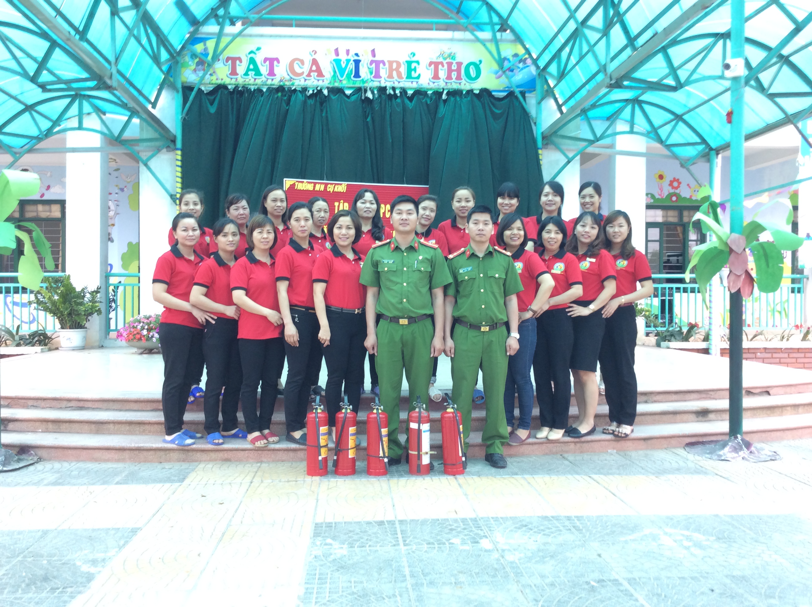 Sáng ngày 12/4/2017 nhà trường đã mời cán bộ phòng CS PCCC số 4 của quận Long Biên về tổ chức tập huấn cho 100% CBGVNV và các bé về một số kiến thức cơ bản về cháy nổ, cách phòng cháy, chữa cháy và các kỹ năng thoát nạn khi có sự cố xảy ra.