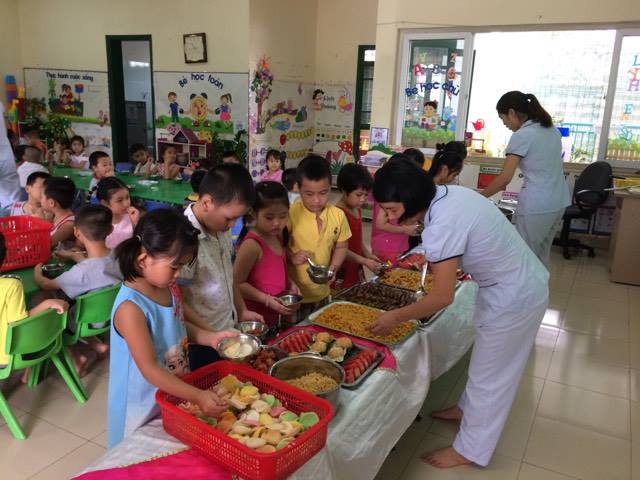 Với sự chuyên nghiệp trong nấu ăn, các cô nhân viên nuôi dưỡng đã tạo ra các món ăn rất phong phú về thực đơn, ngon, đẹp mắt.