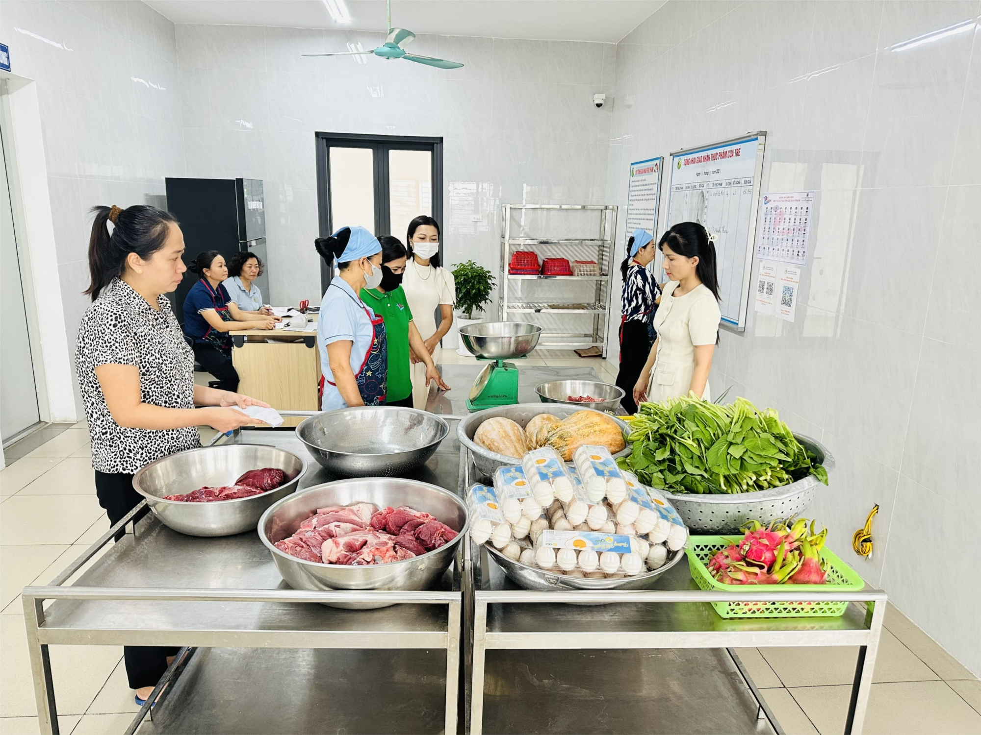 Nhà trường cũng thực hiện đầy đủ việc lưu mẫu thực phẩm, ghi chép sổ sách, nhật ký bếp ăn và kiểm thực ba bước theo đúng hướng dẫn của ngành. Đây là cơ sở quan trọng để truy xuất nguồn gốc và đánh giá kịp thời khi có vấn đề phát sinh liên quan đến chất lượng bữa ăn.